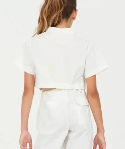 VintageHavana Kid’s Tops Ivory W/ Palm Tree Print Smocked Button Front Tank | Ivory W & Palm Tree
