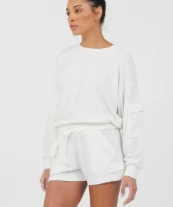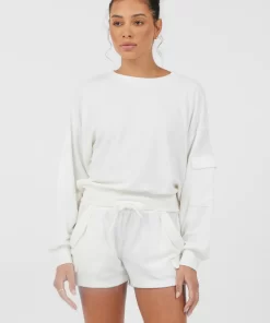 VintageHavana Women’s White With Strawberry Stripe "love" Crewneck | White W & Strawberry Stripe