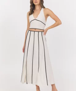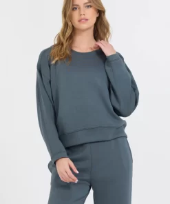 VintageHavana Women’s Light Grey W/ Charcoal Tie Front Color Block Sweater | Light Grey & Charcoal