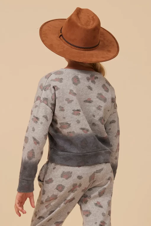 This Large Leopard Print Dip Dye Crewneck combines bold style with comfortable wear. Featuring a trendy cropped cut, it showcases a striking leopard print enhanced by unique dip dye detailing. The classic crewneck design ensures a relaxed fit, making it a versatile piece for casual, fashion-forward looks.