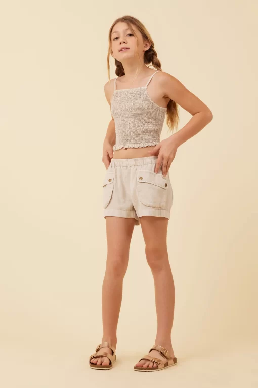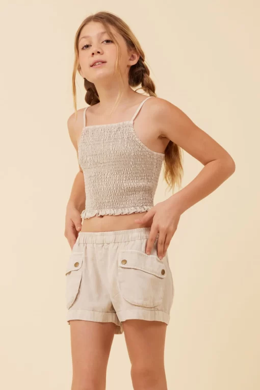 The Soft Tan Streaky Tencel Rushed Tank Top features:
