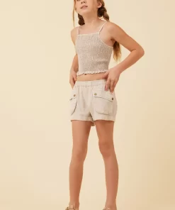 The Soft Tan Streaky Tencel Rushed Tank Top offers a sleek, fitted silhouette crafted from soft, breathable Tencel fabric. Its subtle streaky pattern adds a touch of understated style, making it a versatile piece for layering or wearing on its own. Ideal for those seeking comfort without sacrificing a polished look.