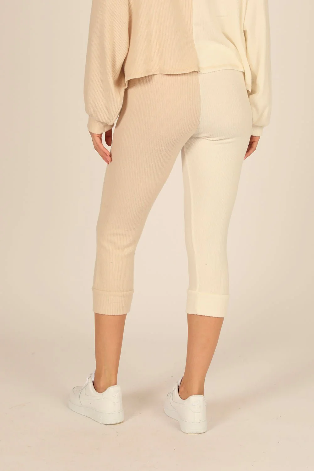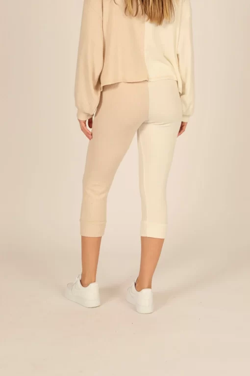 The Brushed Hacci Rib Split Jogger offers a comfortable, cropped fit perfect for warmer days. Crafted from a soft blend of rayon, polyester, and spandex, it provides gentle stretch and breathability. Available in a subtle Summer White and Light Taupe, this jogger combines style with ease of care—simply hand wash cold and dry flat to maintain its quality. Ideal for casual wear with a refined touch.