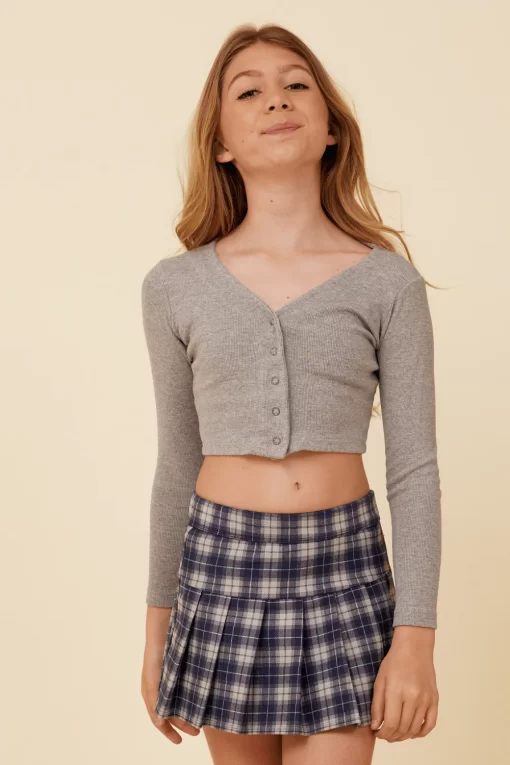 The Classic Grey Ribbed Snap Button Cardigan features: