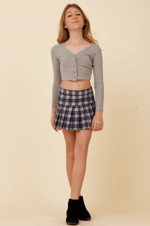 The Classic Grey Ribbed Snap Button Cardigan offers a stylish, cropped fit crafted from comfortable ribbed material. Its snap button closure provides easy wear and a clean, polished look, making it a versatile layering piece for any wardrobe. Perfect for adding subtle texture and warmth with a modern touch.
