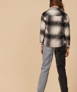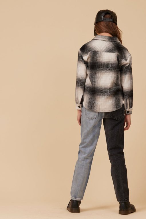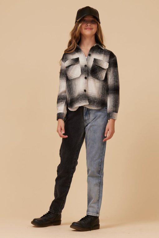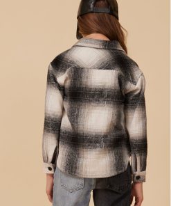 This black flannel shacket combines the warmth of a flannel shirt with the structure of a jacket. Crafted from soft plaid flannel, it features a button closure and two front pockets for convenient storage. Perfect for layering, it offers both comfort and style in a versatile piece suitable for casual or smart-casual wear.