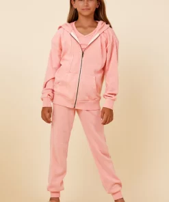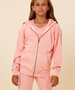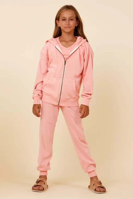 The Misty Coral New Burnout Zip Hoodie features: