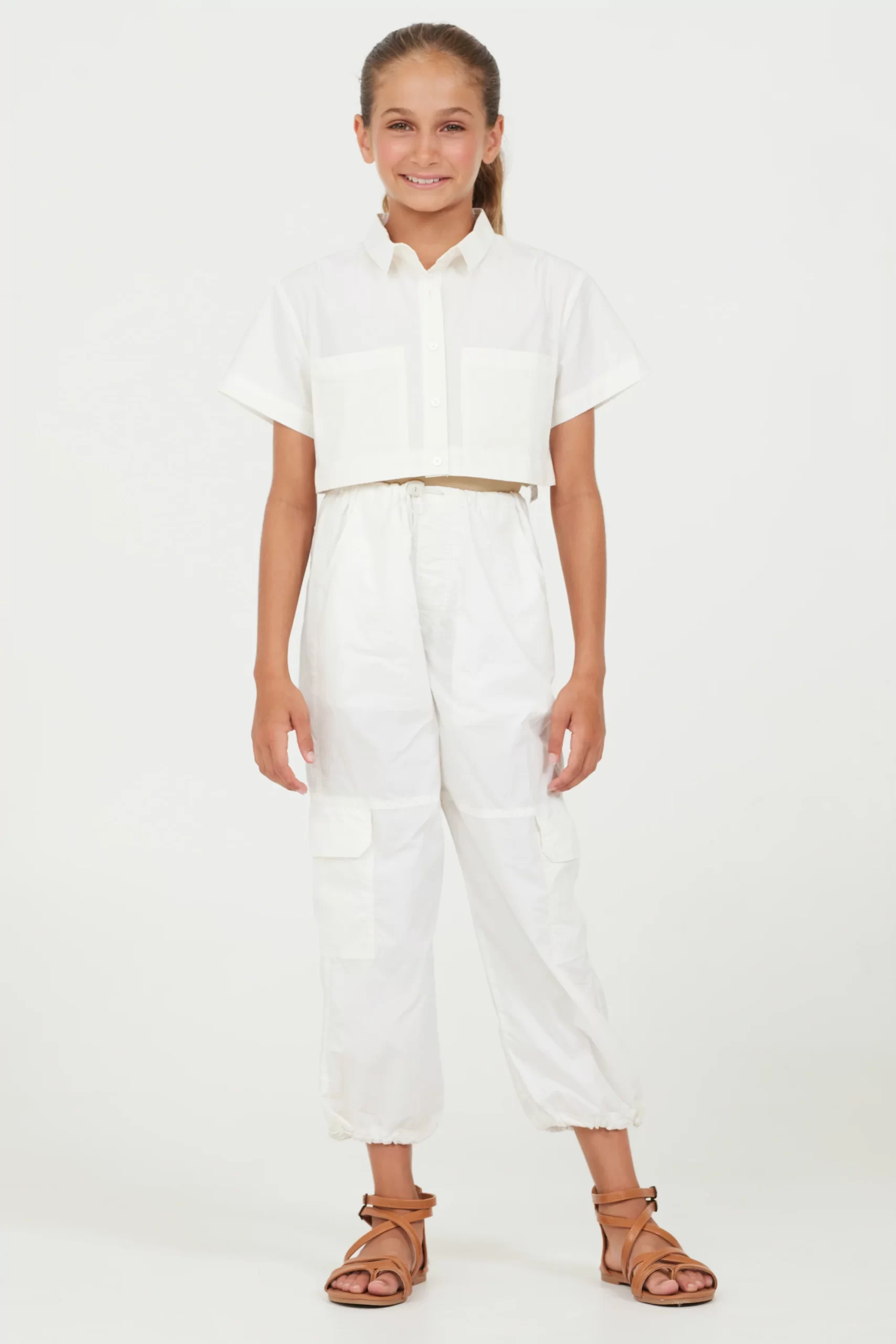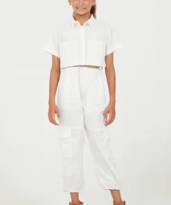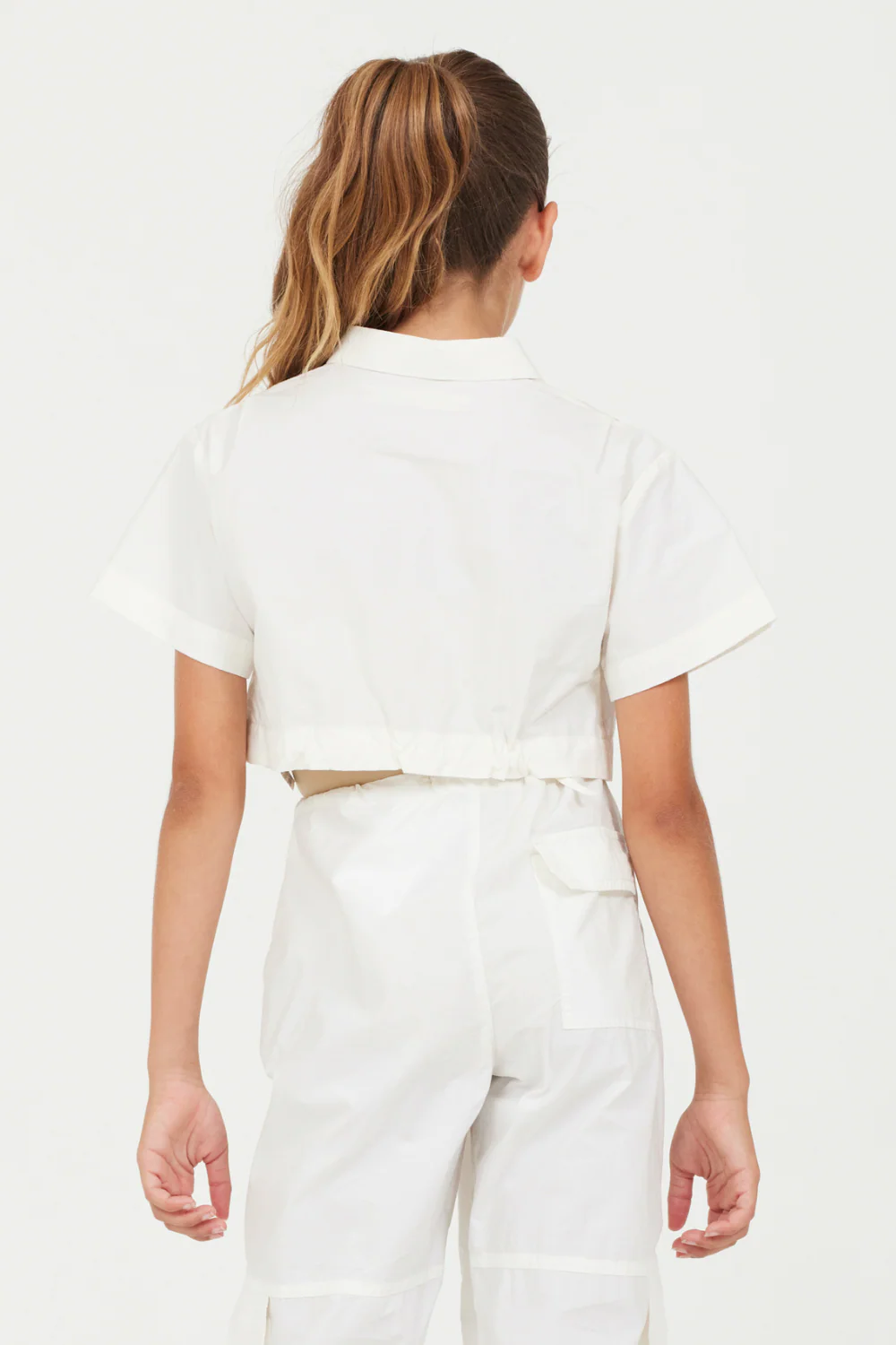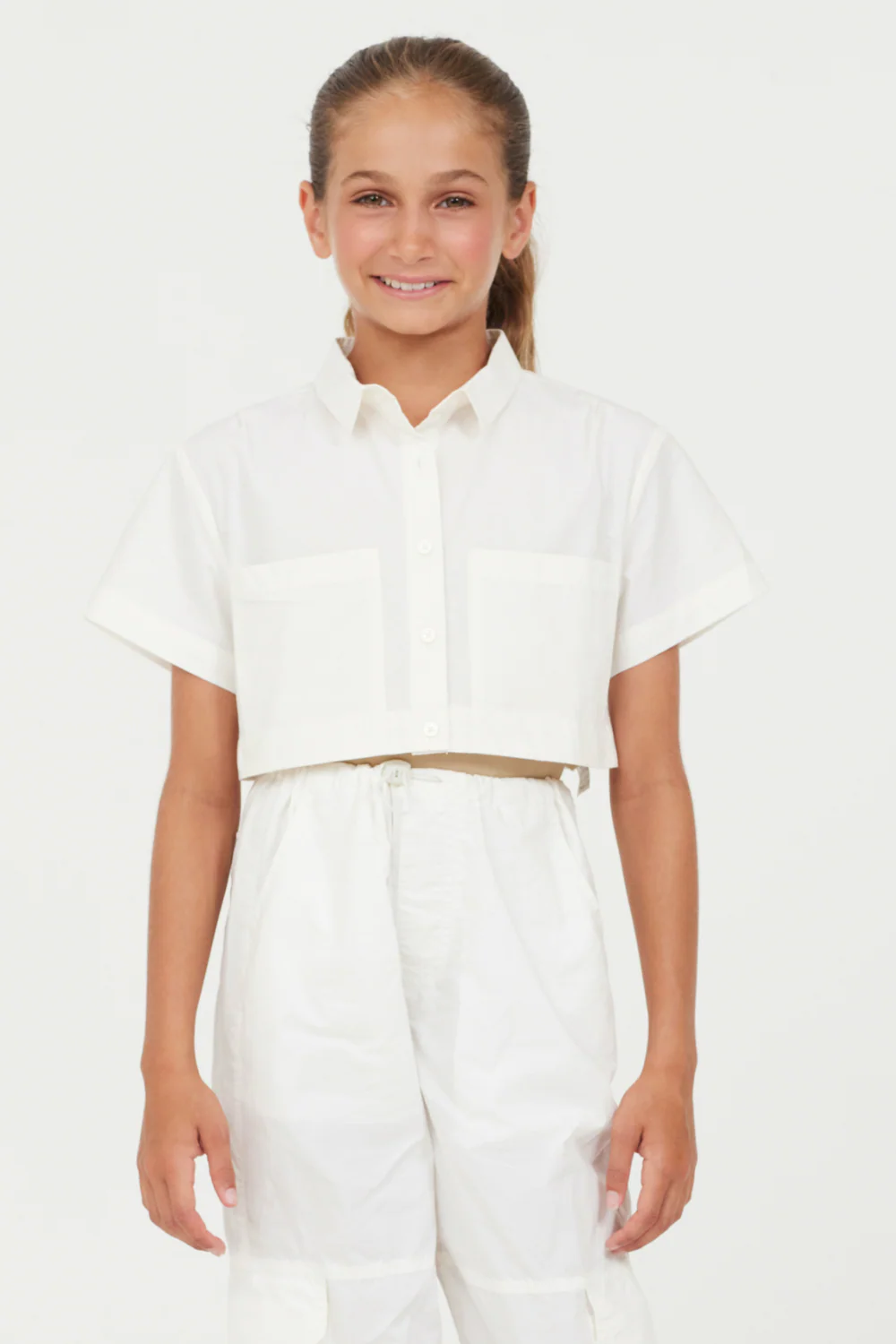 The Oyster Cropped Button Down offers a stylish blend of comfort and functionality with its short sleeves and cropped fit. Designed with a classic button-down front and convenient front pockets, it’s perfect for a polished yet relaxed look suitable for various occasions.