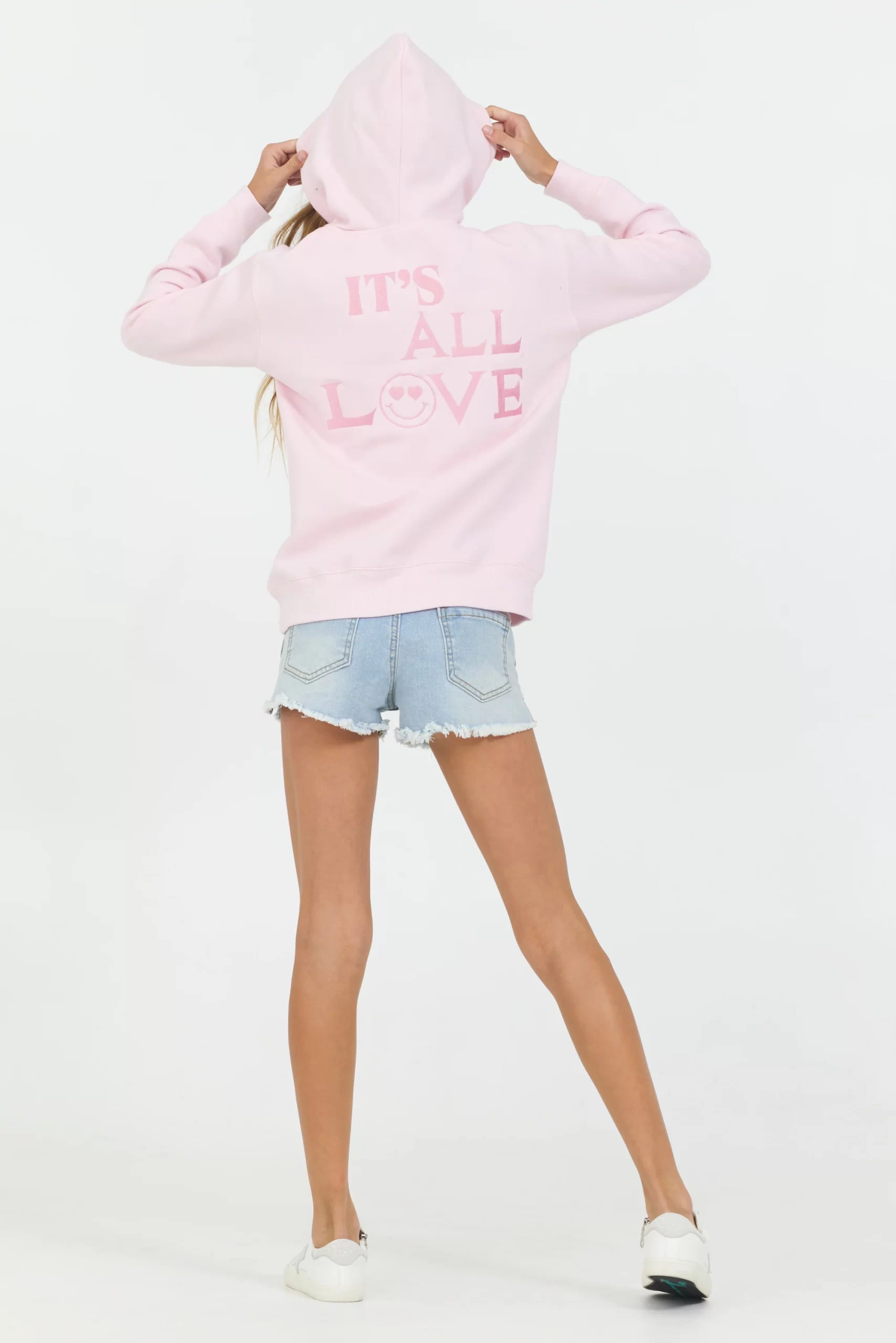 Embrace comfort and positivity with our Pink ‘It’s All Love’ Hoodie. This cozy pullover features an uplifting “It’s All Love” print that adds a touch of good vibes to your casual wardrobe. Perfect for layering during cooler days or simply making a subtle statement about what matters most.