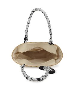 The ALIVE BAG in white combines timeless crochet craftsmanship with a modern top handle tote design. Featuring delicate “Be Vintage” embroidery, this bag offers a stylish yet practical accessory perfect for everyday use or special occasions. Its lightweight construction and comfortable handle make it easy to carry, adding a touch of vintage charm to any outfit.