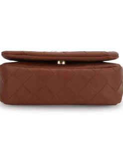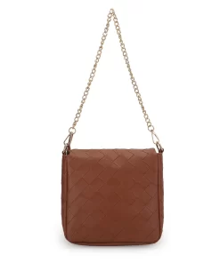 The Allie Bag in brown combines sleek design with practical features. It includes a stylish chain shoulder strap for comfortable wear and a metallic logo that adds a subtle touch of elegance. The snap closure ensures your belongings stay secure while providing easy access. Perfect for everyday use or special occasions, this bag offers both functionality and timeless style.