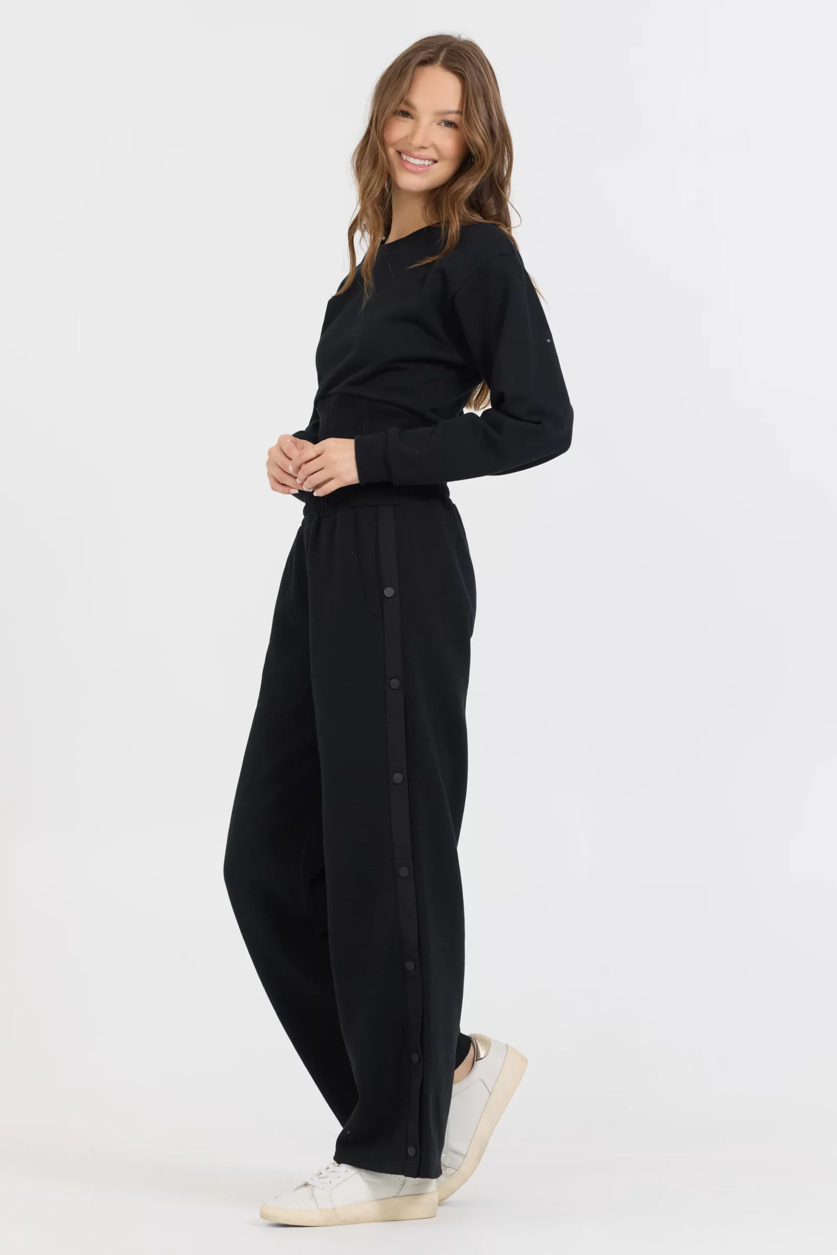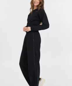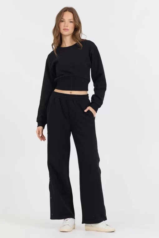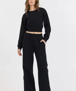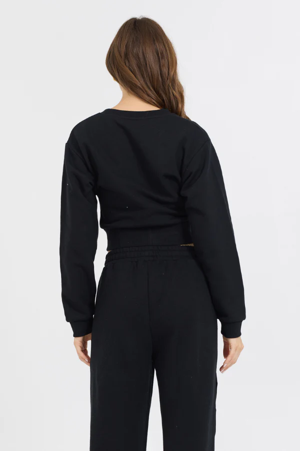 The Black Brushed Fleece Corset Crew features: