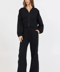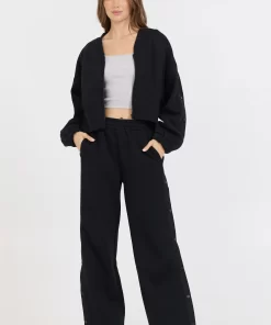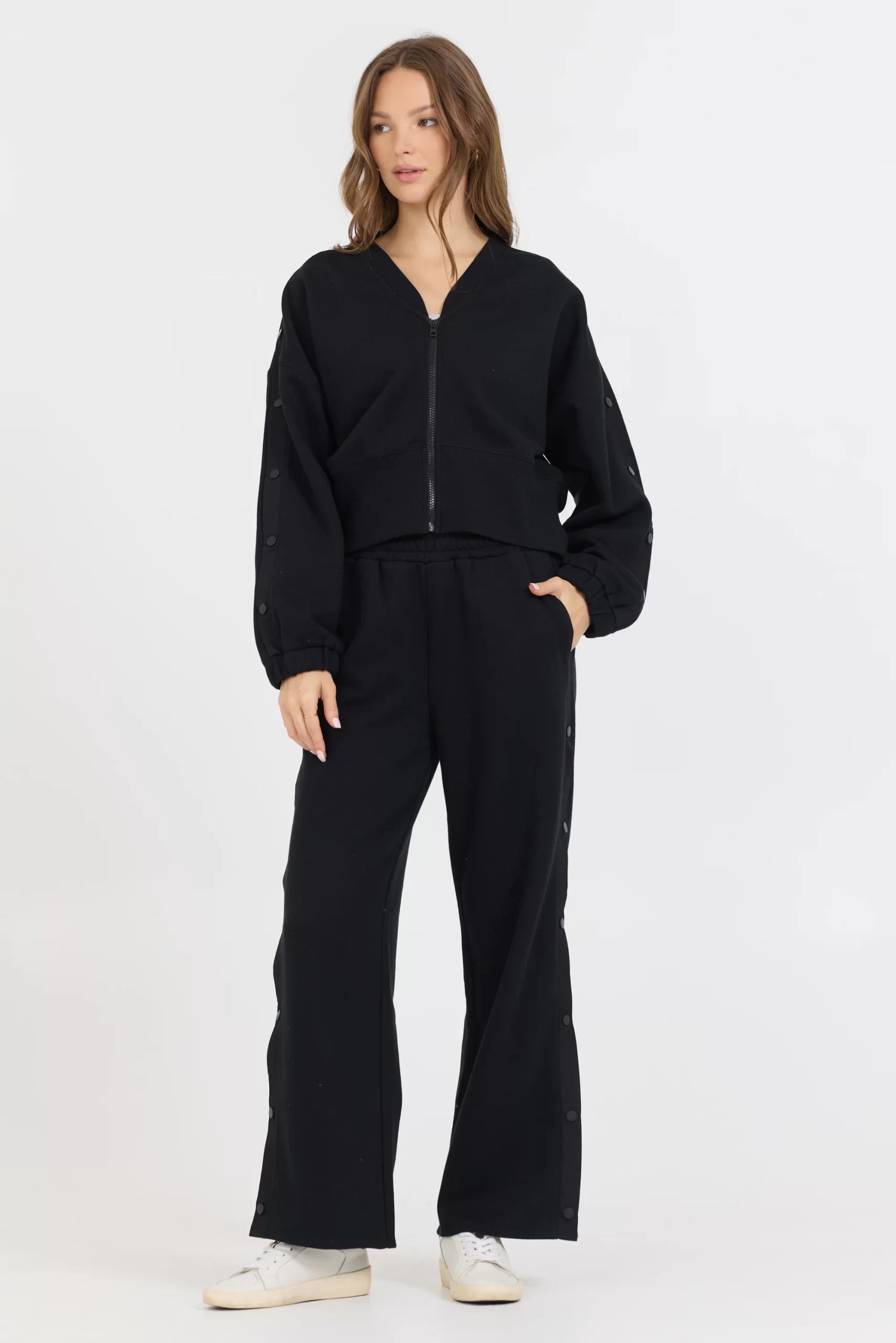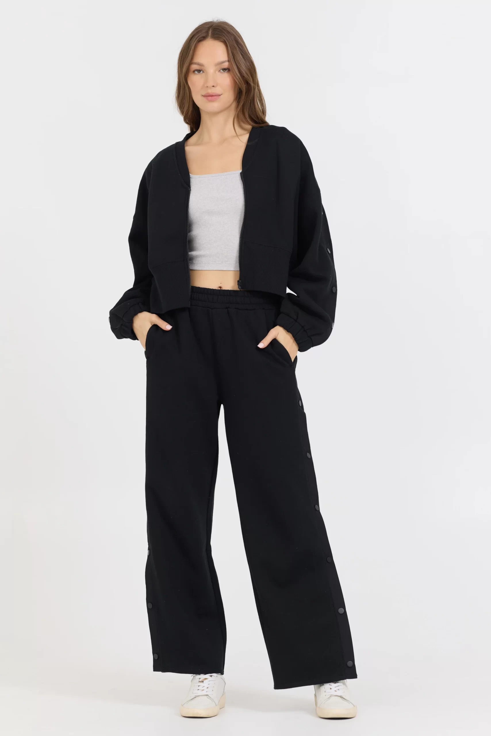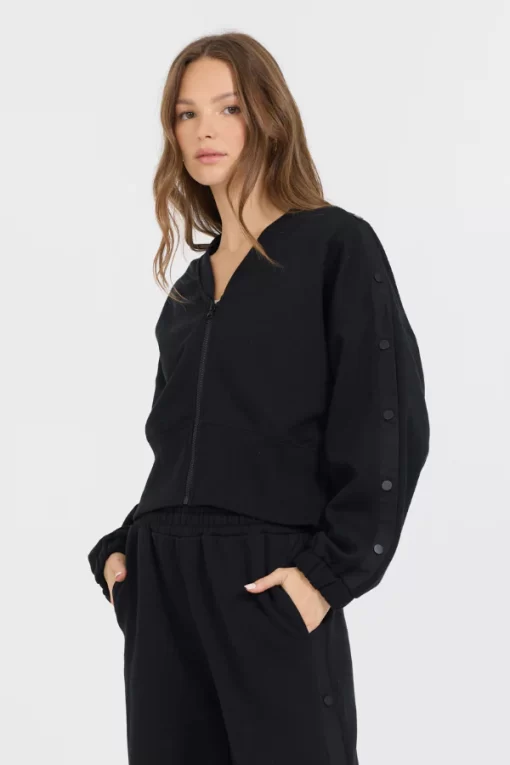 The Black Brushed Fleece Zip Up W/ Snap Sleeves features: