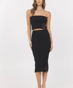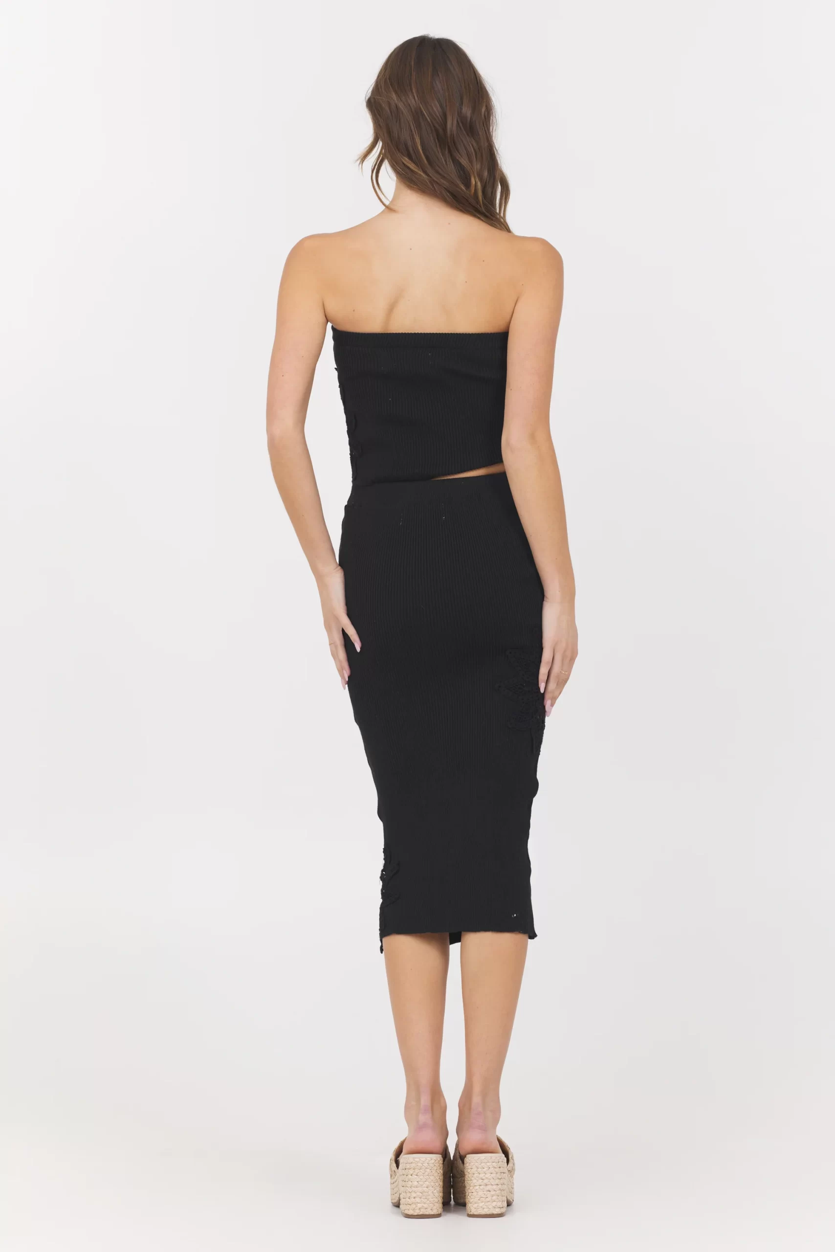 The Black Crochet Floral Rib Tube Top combines delicate crochet craftsmanship with a sleek tube top silhouette for a stylish, breathable fit. Its unique side cutout detail adds a modern edge, making it perfect for warm days or layering under jackets. This versatile piece effortlessly blends comfort and fashion for a confident, casual look.