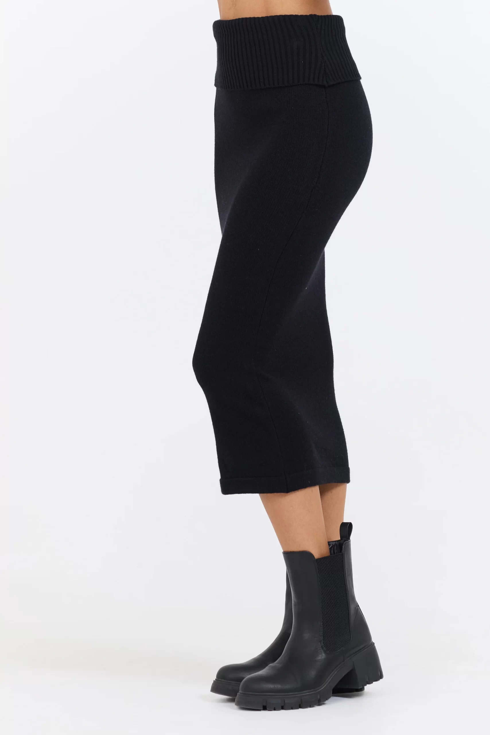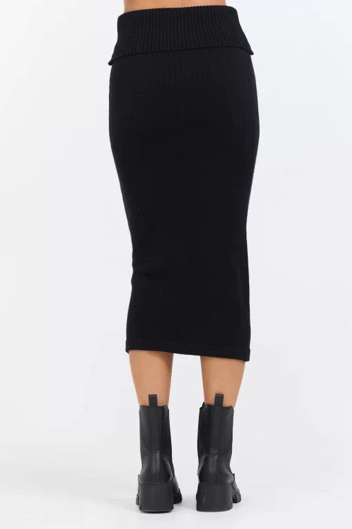 The Black Knit Midi Skirt features: