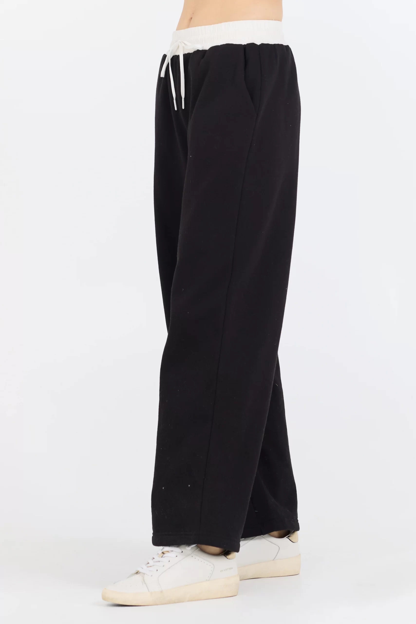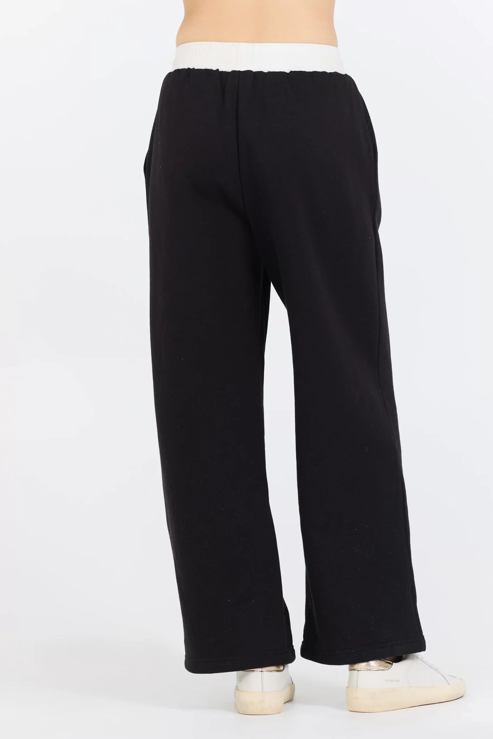 The Black/ White Essential Fleece Pant W/ Poplin Waist features: