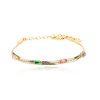 The Blair Bracelet features a sleek 6.5-inch length and a slim 0.47-inch width, crafted from 18K gold-plated copper for lasting shine. Its non-tarnish and waterproof design ensures durability for everyday wear. To keep it looking its best, avoid contact with soaps, perfumes, and lotions, and polish gently with a lint-free microfiber cloth. This bracelet combines elegant style with practical care for a timeless accessory.