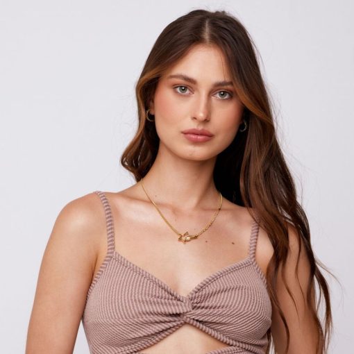 The BROOKE Necklace features a 17-inch copper-based chain with an additional 3-inch extension for adjustable length. Finished with elegant 18K gold plating, this piece offers both durability and a refined look, making it a versatile accessory for everyday wear or special occasions.