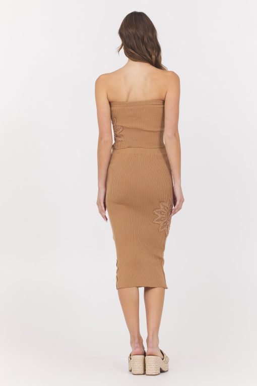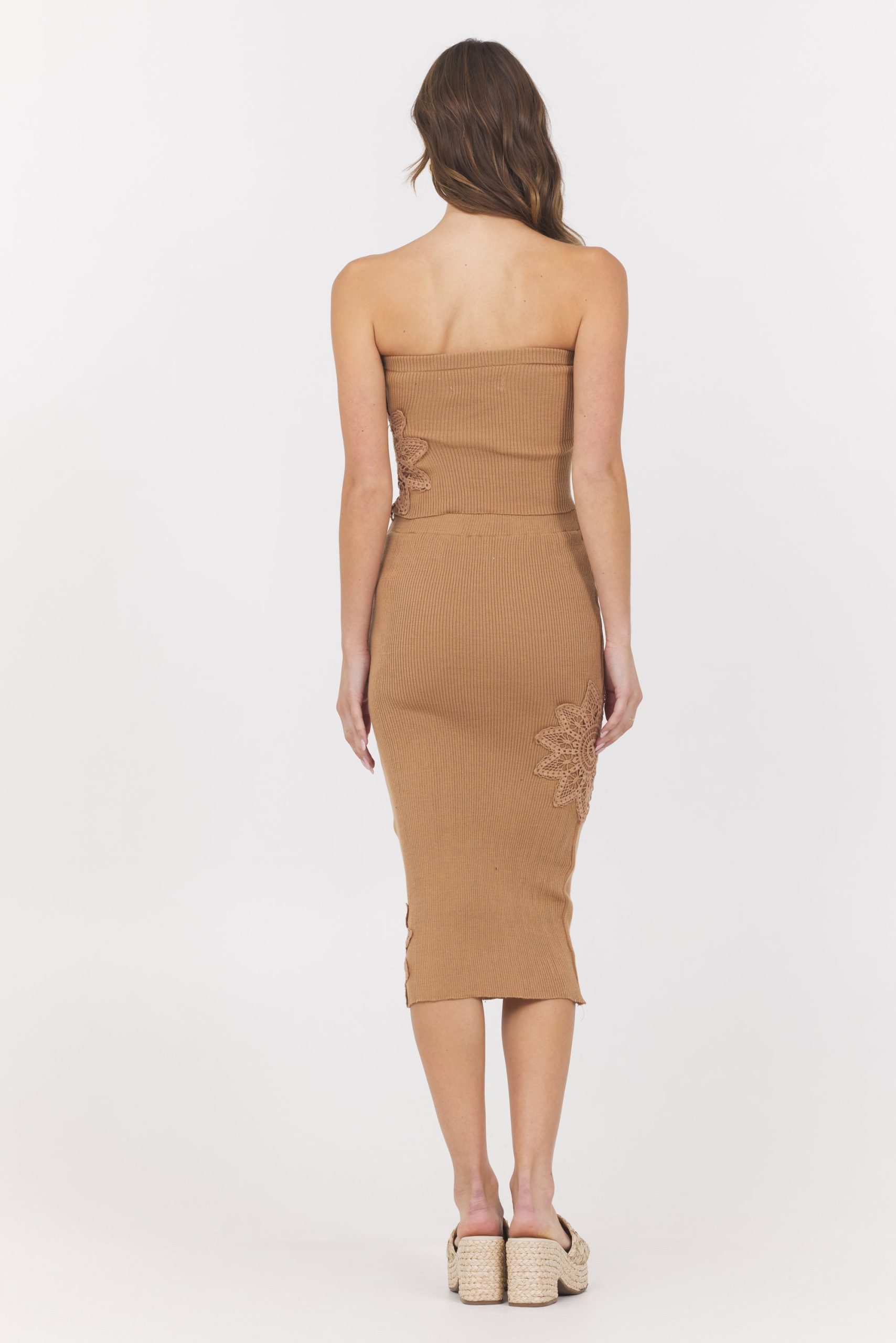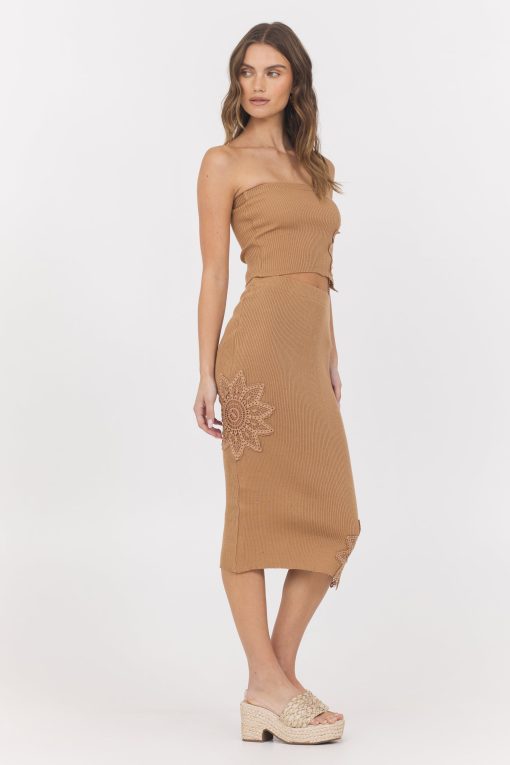 The Caramel Crochet Floral Rib Tube Top combines delicate crochet craftsmanship with a modern tube top silhouette. Its floral rib pattern adds texture and visual interest, while the cutout side detailing offers a subtle, stylish edge. Perfect for warm days or layering, this top delivers both comfort and a chic, effortless look.