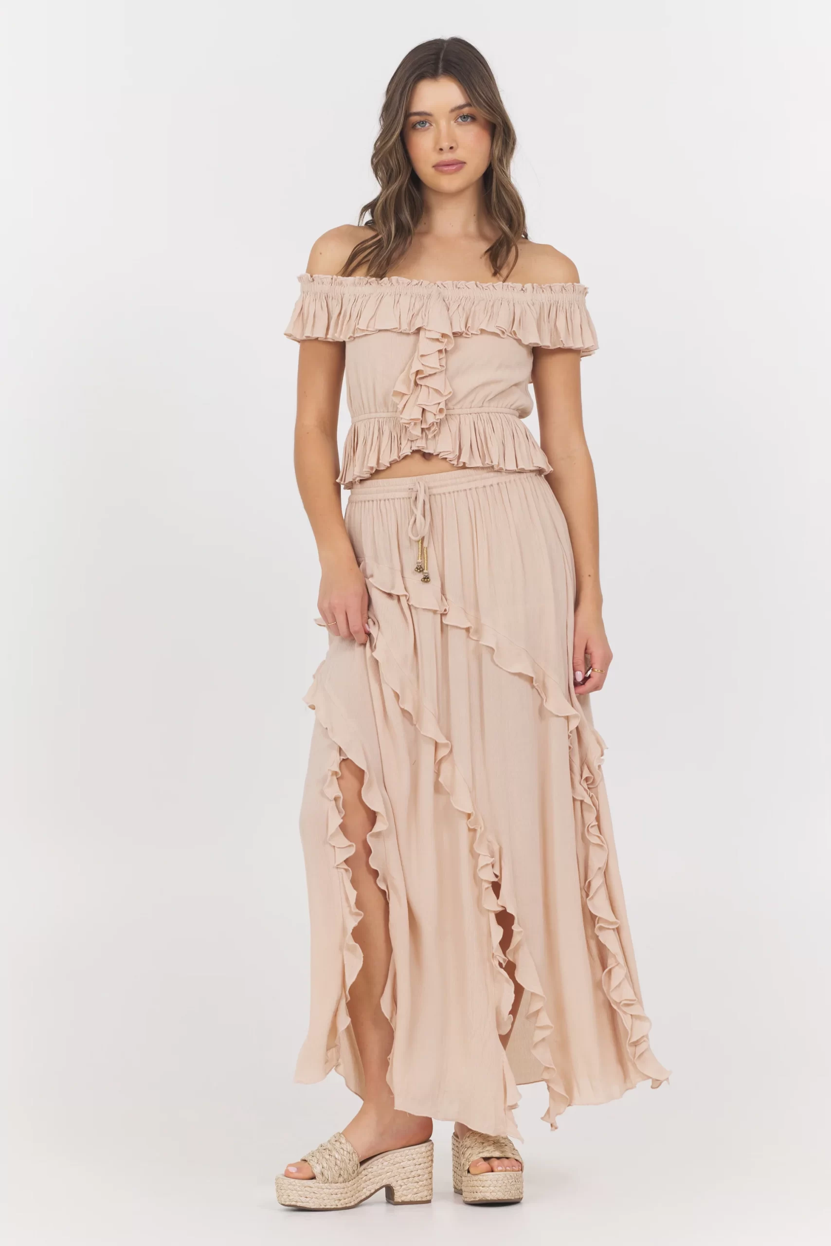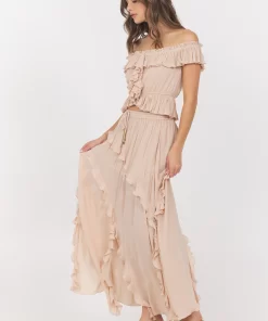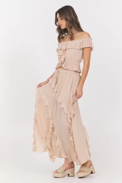 VintageHavana Women’s Champagne Toast Ruffle Top + Skirt 2-piece Set