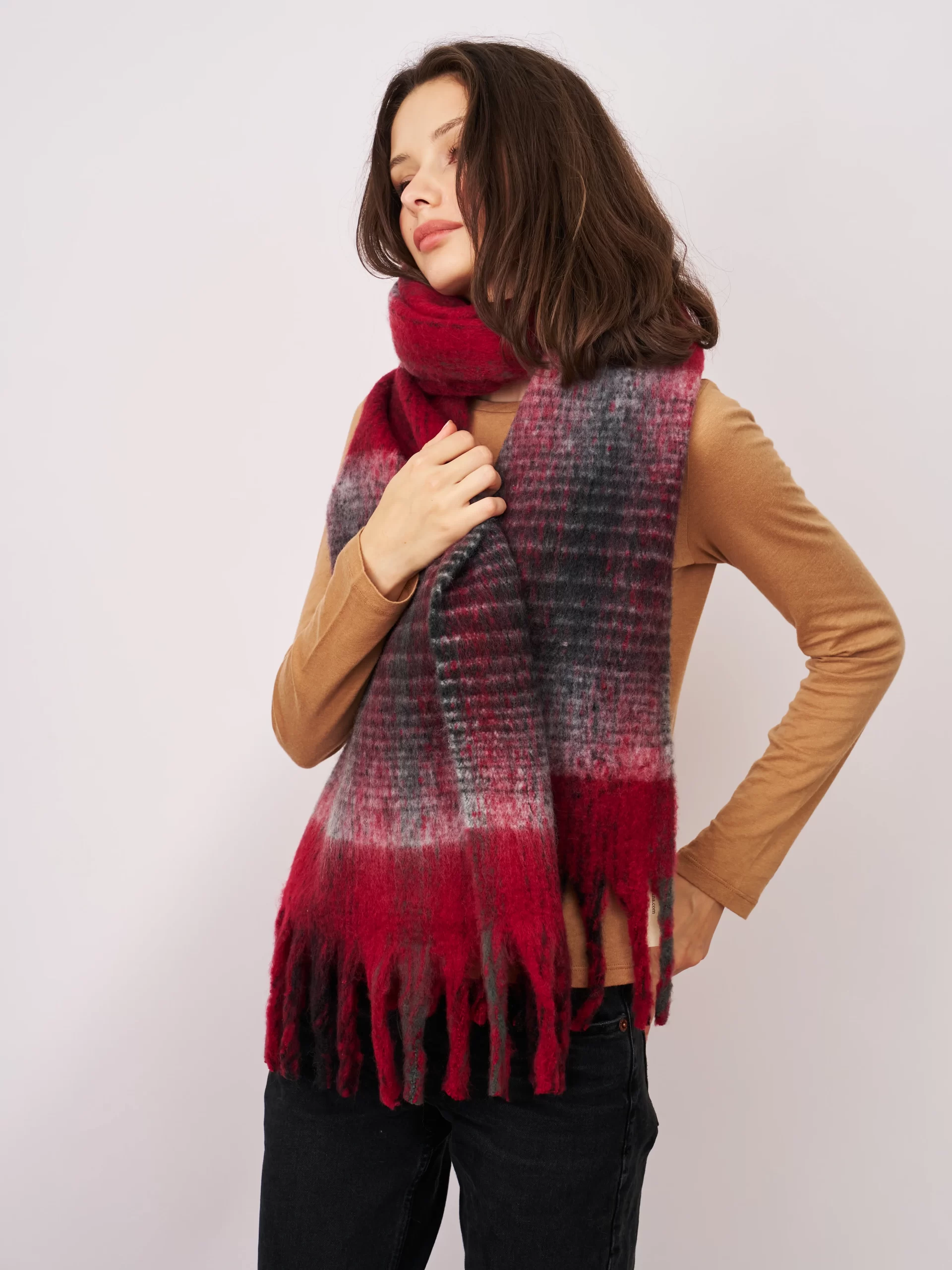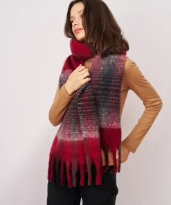 - Brushed check chunky fringe scarf