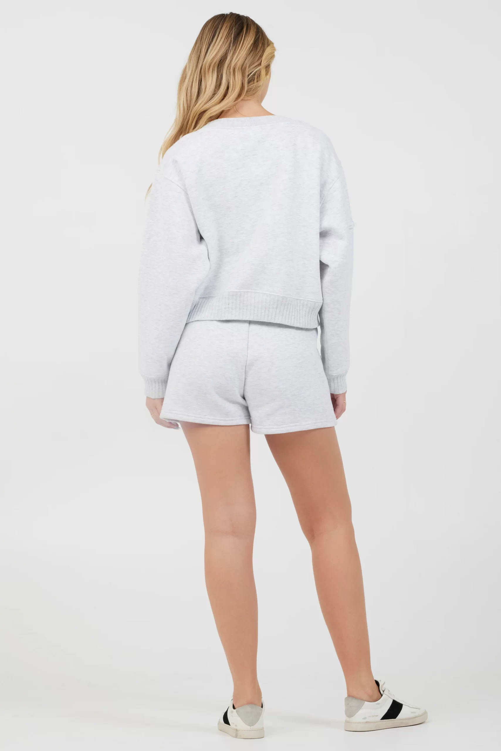 The Grey Icicle Essential Fleece Crewneck combines comfort and style with its soft fleece fabric and relaxed cropped fit. Featuring a classic crewneck and subtle distressed pocket details, this versatile piece adds a modern edge to your casual wardrobe while keeping you cozy throughout the day.