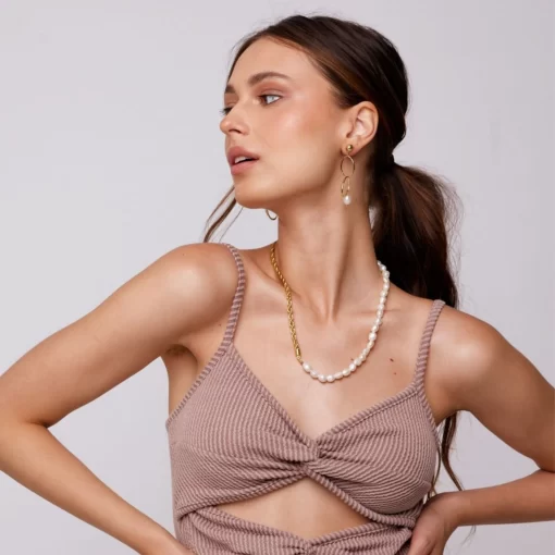 The HEIDI Necklace features an 18.5-inch copper-based chain with a 2.75-inch extension, allowing for adjustable wear. Finished with elegant 18K gold plating, this piece combines durability with a refined, warm glow, making it a versatile addition to any jewelry collection.