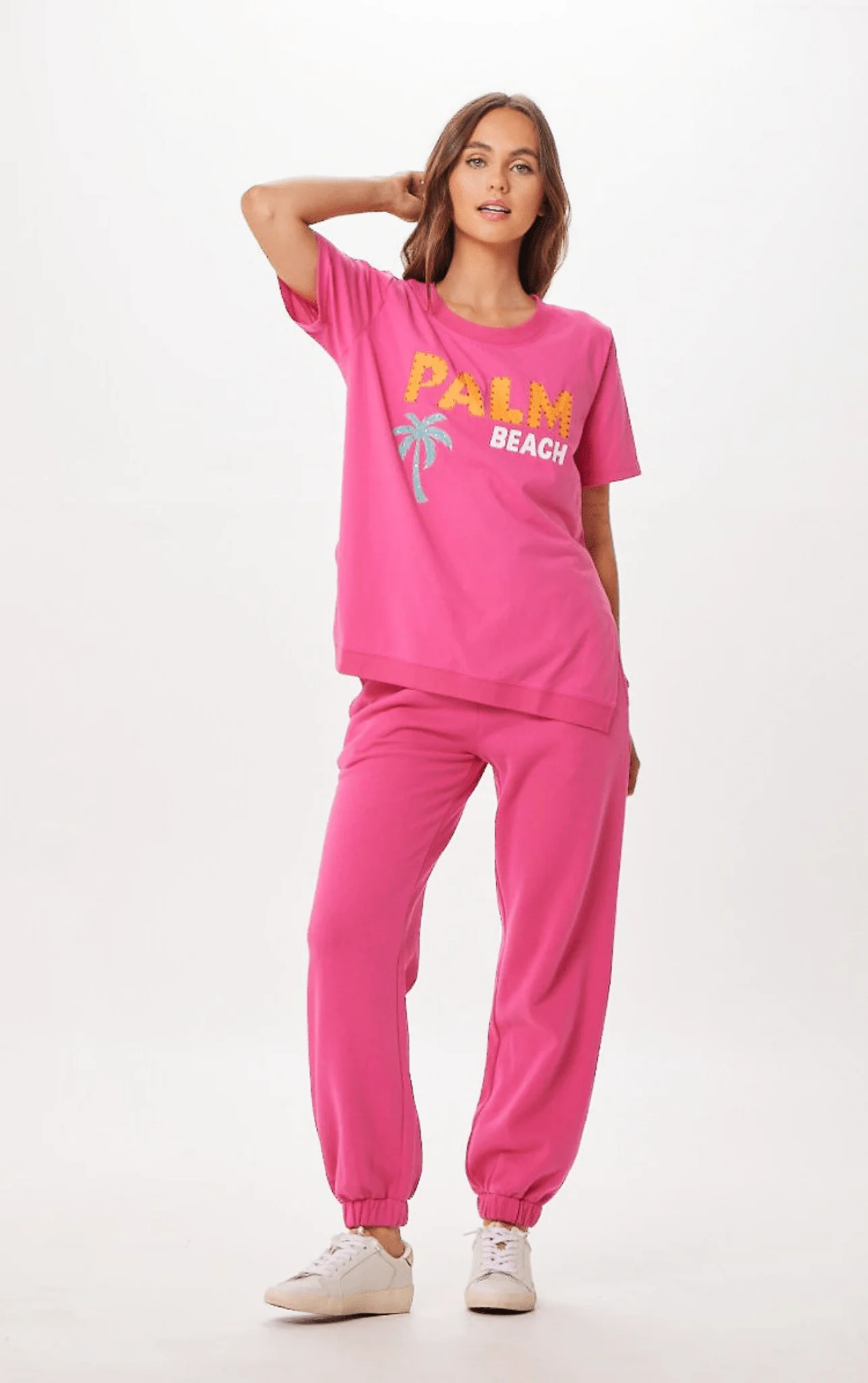 The Hot Pink Palm Beach Jet Setter T-Shirt features: