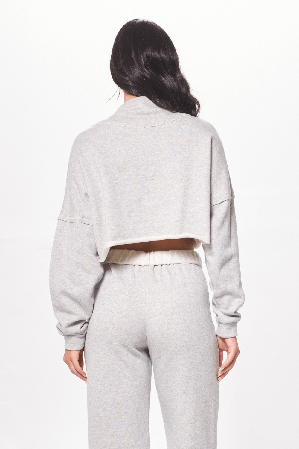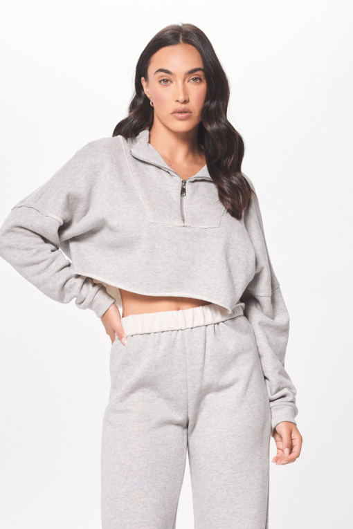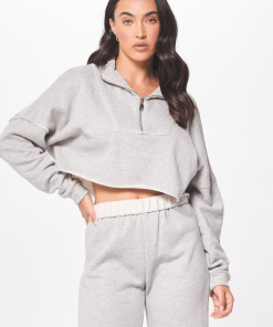 The Hunter Grey Fleece Quarter Zip with Raw Edge offers a modern, cropped fit with a convenient quarter zip for easy layering. Its raw edge detailing adds a subtle, stylish touch, making it a versatile piece for casual wear or relaxed outings. Crafted for comfort and effortless style, this fleece is perfect for those seeking both function and a contemporary look.