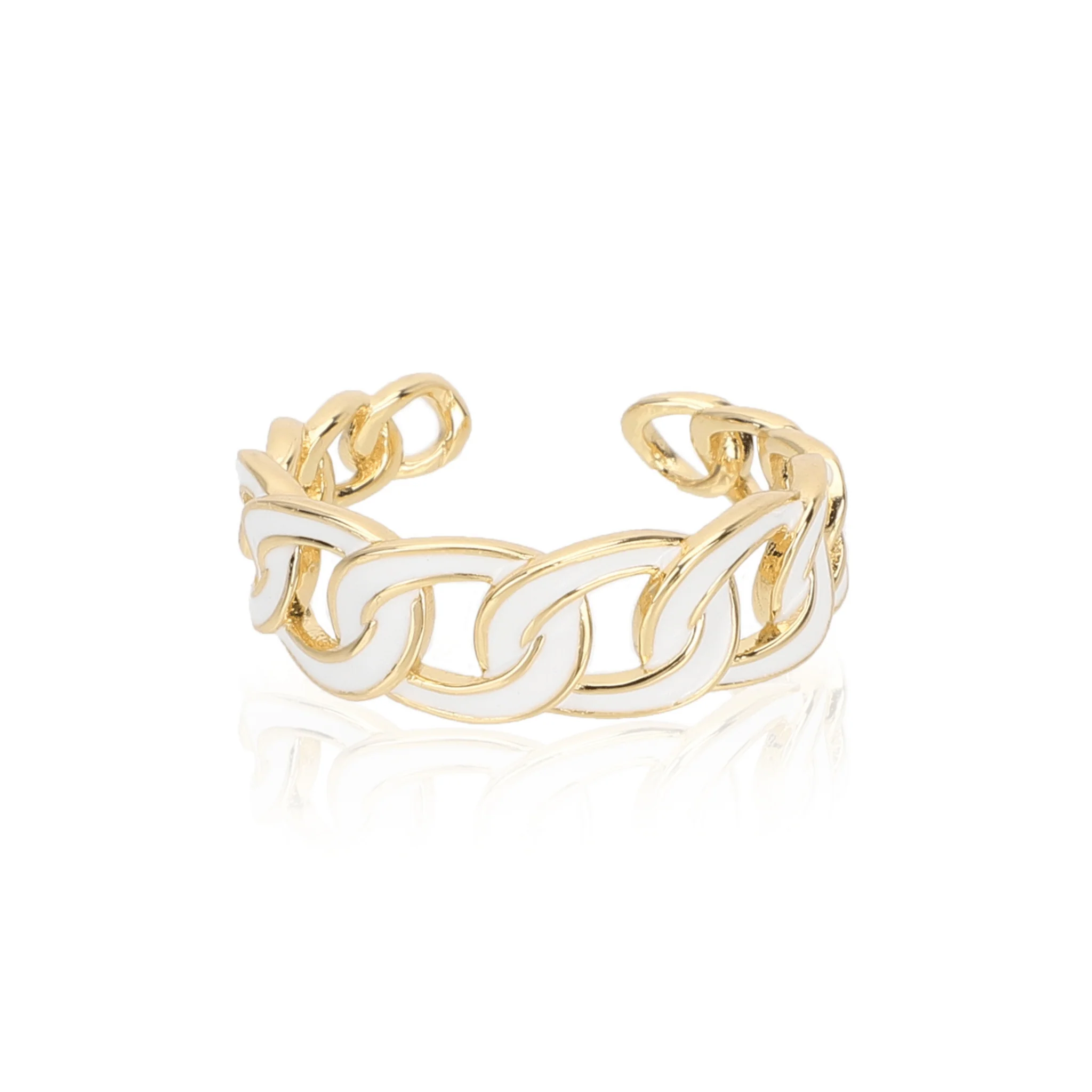 The Jolie Ring features a sleek 0.28″ width and adjusts to fit sizes 5 through 9, offering versatile wear. Crafted from 18K gold-plated copper, it resists tarnishing and is waterproof, ensuring lasting shine and durability. To keep your ring looking its best, remove it before applying body products and avoid contact with soaps, perfumes, and cleaning agents. Gently polish with a lint-free microfiber cloth to maintain its elegant finish. Perfect for everyday wear with a touch of refined style.