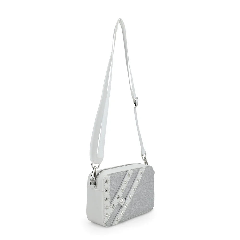 The Joyce Bag in silver combines sleek style with practical design. Featuring an adjustable crossbody strap, it offers customizable comfort for all-day wear. The subtle star detail adds a touch of unique charm, making it a versatile accessory for both casual outings and polished looks.