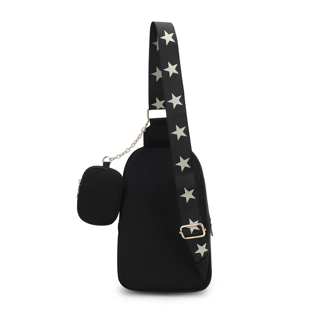 The Kety Bag in Black and Gold combines sleek design with practical features. Its secure zipper closure keeps your belongings safe, while the subtle star detail adds a touch of unique style. Perfect for everyday use, this bag offers both functionality and a refined look.