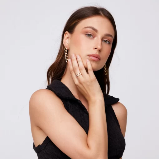 The Lara Earrings combine elegance with durability, crafted from 18K gold-plated copper and featuring sterling silver posts safe for sensitive ears. Measuring 1.97 inches in height and 0.35 inches in width, these lightweight earrings resist tarnishing and are waterproof, making them perfect for everyday wear. To keep their shine, avoid contact with soaps, perfumes, and lotions, and polish gently with a lint-free microfiber cloth. Elevate your look with jewelry designed for both style and lasting quality.