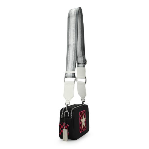 The Legend Bag in black and red combines sleek style with practical design. Featuring a sturdy top handle and an adjustable crossbody strap, it offers versatile carrying options for your convenience. The subtle star detail adds a unique touch, making this bag a standout accessory for everyday use or special occasions. Durable and chic, it’s perfect for those who appreciate both fashion and function.