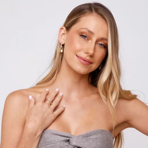 These MADELYN Earrings feature a sleek design measuring 1.18″ in length and 0.39″ in width. Crafted from copper-based metal, they are finished with high-quality 18K gold or silver plating, offering both durability and a refined look. Perfect for adding a subtle yet elegant touch to any outfit.