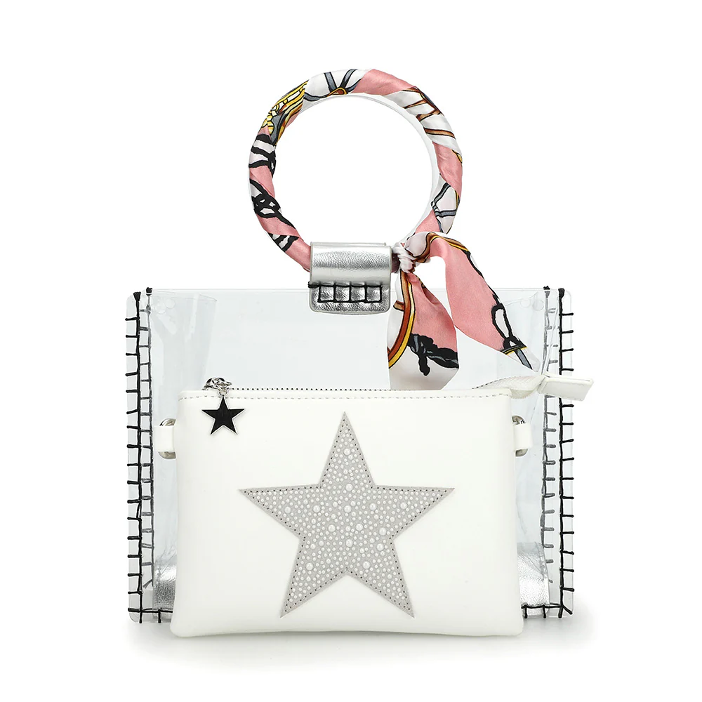 The Mini Molly in White Pearl combines style and functionality with its versatile top strap and convenient crossbody strap for comfortable wear. Easily secure your essentials with the pull-to-close feature, while the star detail inside the zipper pouch adds a subtle touch of charm. Finished with a delicate scarf, this bag offers a polished yet casual look perfect for everyday use.