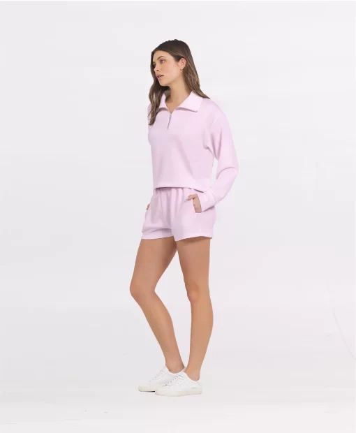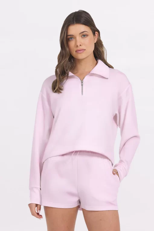 The Paradise Pink Cloud Quarter Zip combines soft, cloud-like fabric with a convenient quarter-zip design for easy layering. Its lightweight material offers comfort and breathability, making it ideal for both active days and relaxed moments. This versatile piece adds a subtle pop of color while ensuring you stay cozy without bulk.