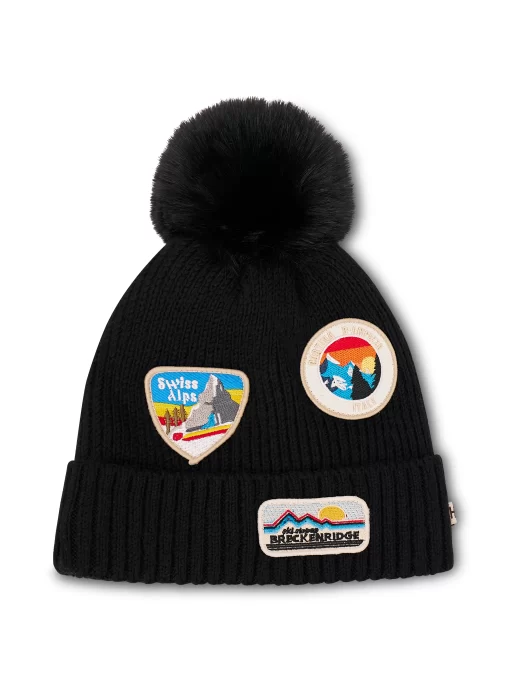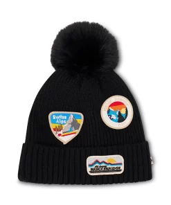 Stay warm and stylish with this ribbed pompom beanie featuring a distinctive Swiss Alp patch. Crafted for comfort and durability, its classic black color pairs effortlessly with any outfit, making it an ideal travel companion for chilly days. The soft knit fabric ensures cozy wear, while the patch adds a unique touch that reflects your adventurous spirit. Perfect for both urban exploration and mountain escapes.