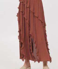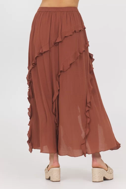 The Sedona Sand Ruffle Maxi Skirt combines elegant maxi length with playful ruffle detailing for a versatile, flattering look. Its flowing silhouette offers comfort and effortless style, perfect for both casual outings and dressier occasions.