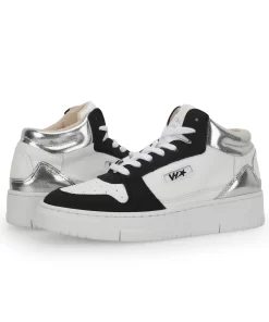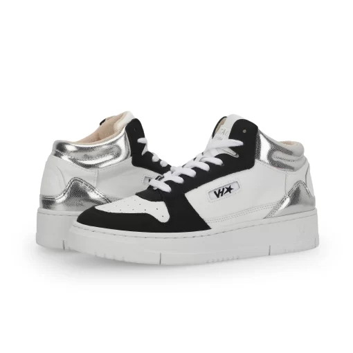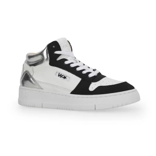 Elevate your style with these CELESTE 6 high tops in striking white and black. Crafted from a premium blend of synthetic, leather, and suede materials, these shoes offer convenient slip-on styling without laces. The signature traction outsole provides reliable grip, while the true-to-size fit ensures all-day comfort. Perfect for adding an effortless edge to any casual outfit.