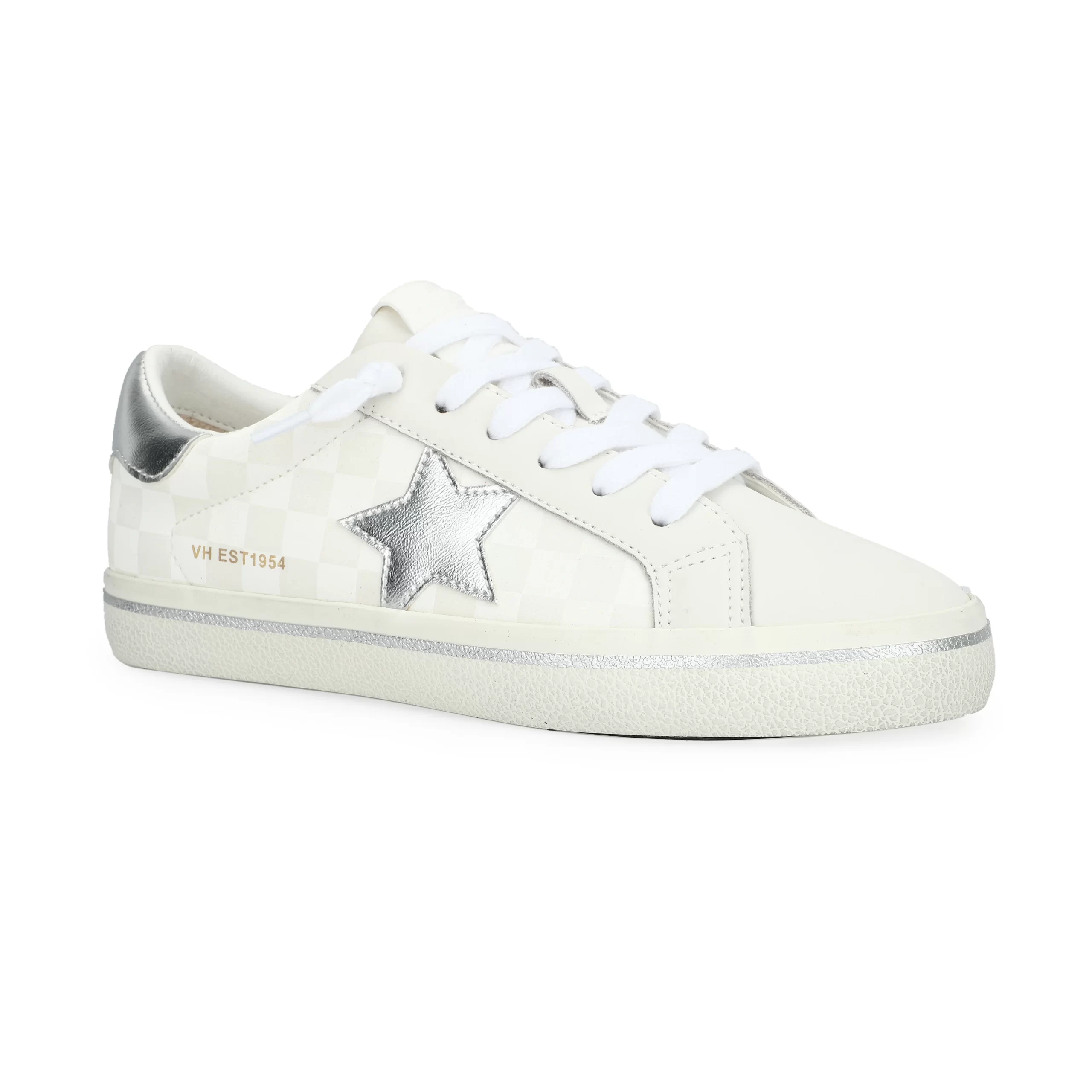 Blending style with comfort, these FLAIR 35 sneakers feature a distinctive white checkered pattern with silver accents. Crafted from a premium combination of synthetic materials, leather, and suede, they offer convenient slip-on styling without laces. The signature traction outsole provides reliable grip, while the true-to-size fit ensures all-day comfort for your casual outings.