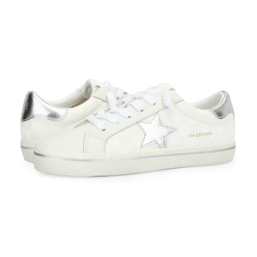 Blending style with comfort, these FLAIR 35 sneakers feature a distinctive white checkered pattern with silver accents. Crafted from a premium combination of synthetic materials, leather, and suede, they offer convenient slip-on styling without laces. The signature traction outsole provides reliable grip, while the true-to-size fit ensures all-day comfort for your casual outings.