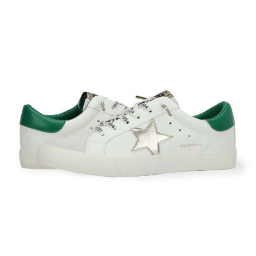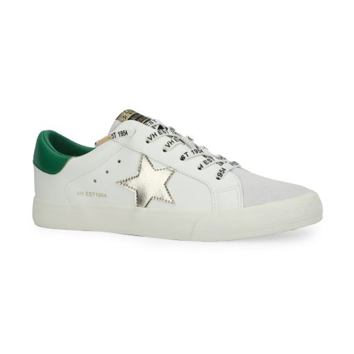 Effortlessly stylish GRANDE sneakers blend synthetic, leather, and suede materials for premium comfort and durability. The convenient slip-on design eliminates the need for laces while the distressed outsole adds character and vintage appeal. The white gold base with green pop accents creates a versatile look that pairs with multiple outfits. Fits true to size for reliable ordering.