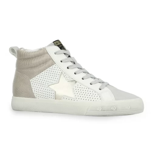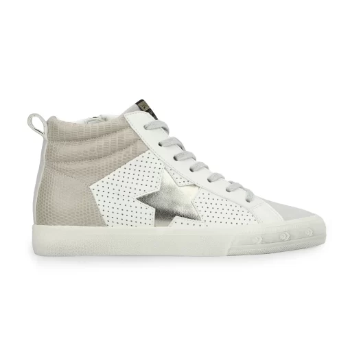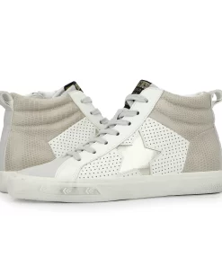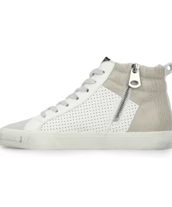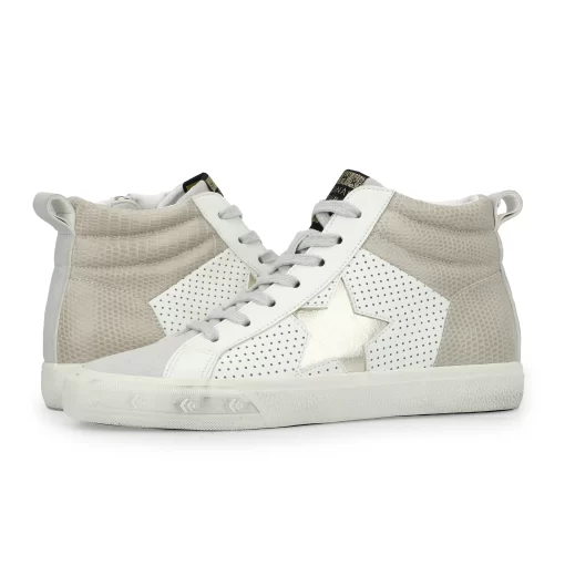 Effortlessly stylish HAILEY high tops in white/taupe pebbled multi combine premium leather and suede textures. These slip-on shoes feature a convenient inside zipper for easy wear with no laces to tie. The slightly worn outsole adds a deliberate vintage touch to this fashion-forward design, perfect for elevating your casual wardrobe.
