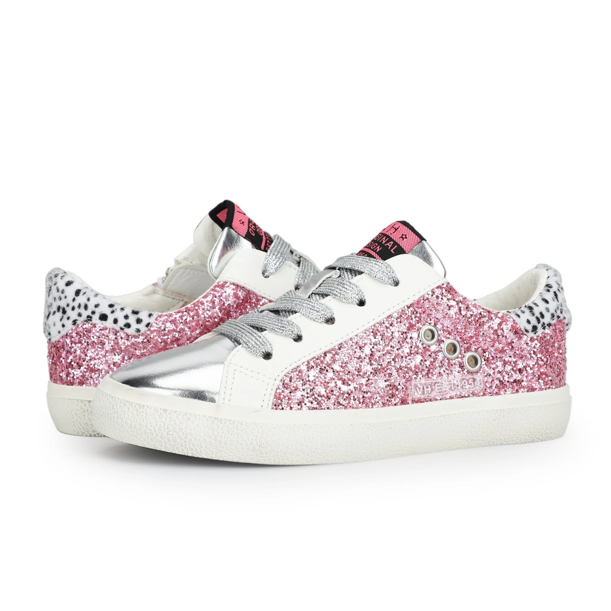 These KIDS ADALENE shoes in PINK GLITTER MULTI feature convenient slip-on styling with no ties needed, making them perfect for young ones on the go. They fit true to size for reliable comfort. The eye-catching pink glitter finish adds a fun, stylish touch to any outfit.