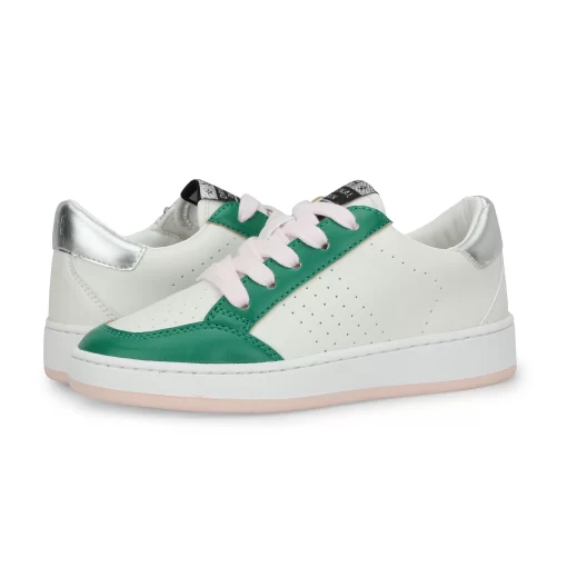 Effortlessly stylish KIDS EDNA in white and green offers convenient slip-on design with no laces to tie. These shoes fit true to size, making them a practical choice for active children who need quick, comfortable footwear for everyday adventures.