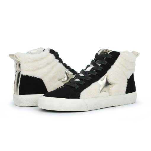 These Kids Gilit shoes feature a convenient slip-on design with no laces, making them easy for children to wear and remove. The hi-top style offers added ankle support, while the true-to-size fit ensures comfort throughout the day. The black and beige multi-color scheme provides a versatile look suitable for various outfits and occasions.