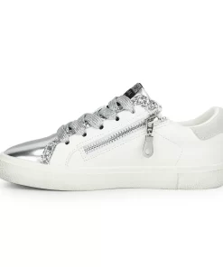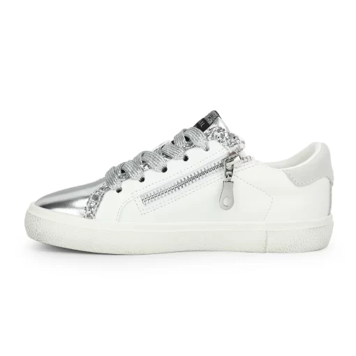 Effortlessly stylish KIDS LEXA in white silver perforated multi-color design offers convenient slip-on styling without laces. These true-to-size shoes combine comfort with trendy aesthetics, perfect for active kids who want both fashion and functionality in their everyday footwear.