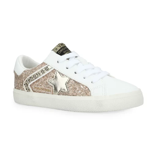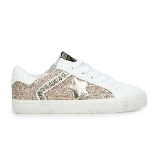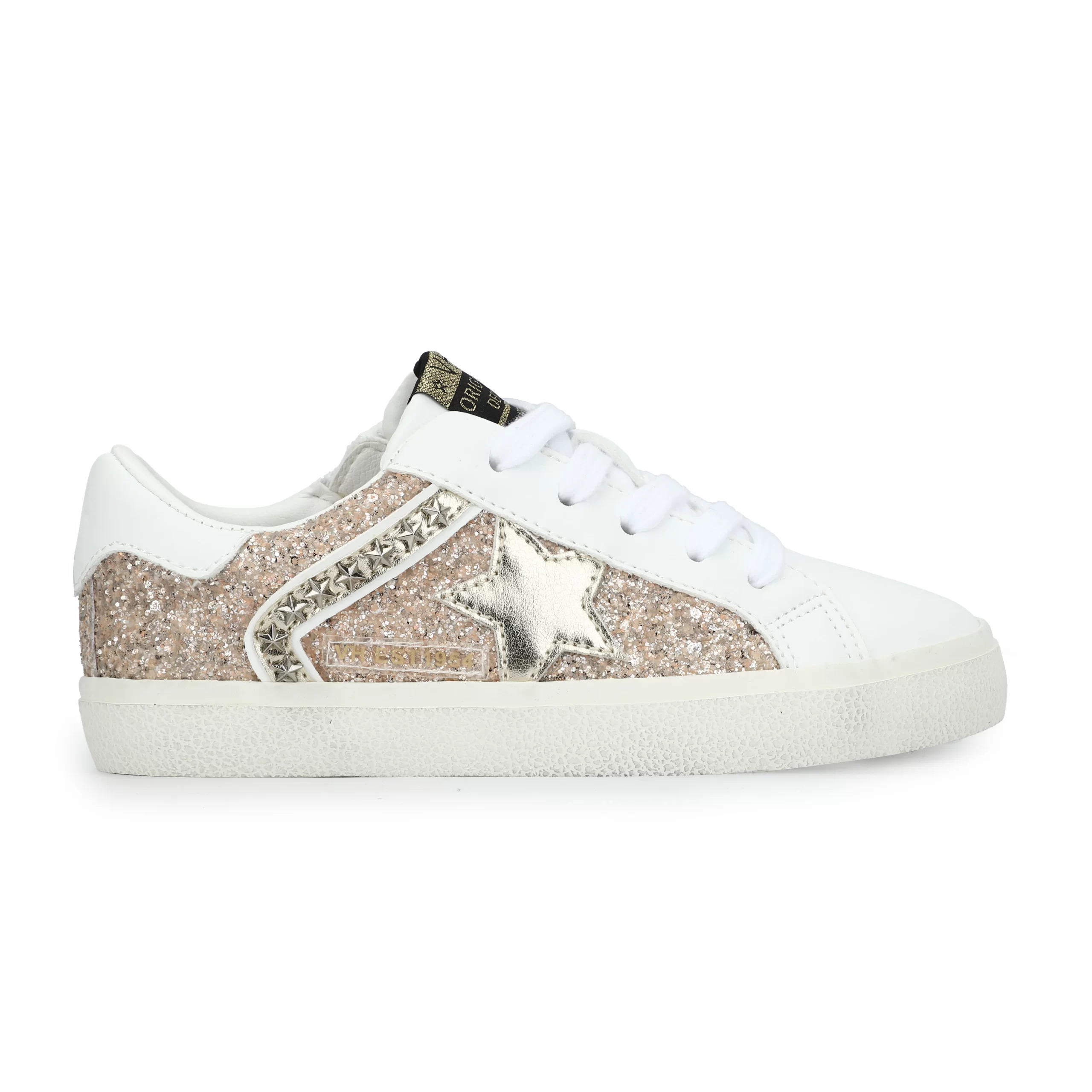 Effortlessly stylish, these KIDS PATTY shoes in WHITE GOLD GLITTER feature convenient slip-on styling with no ties needed. Perfect for little ones on the go, they offer a true-to-size fit that ensures comfort and ease. The glittery finish adds a touch of sparkle to any outfit.
