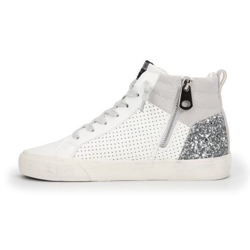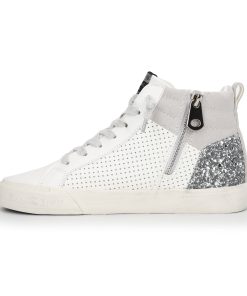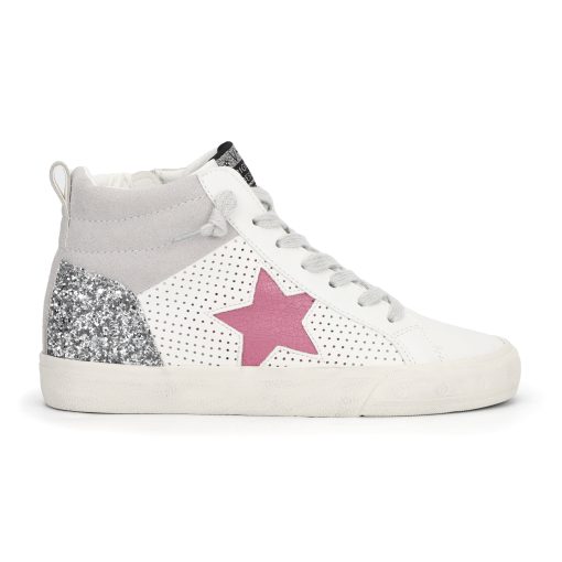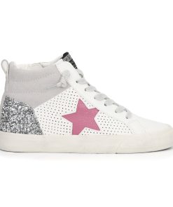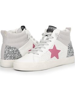 Effortlessly stylish high-top sneaker featuring a convenient slip-on design with no laces. Crafted from premium micro suede and leather materials for durability and comfort. The white, grey, and pink color combination offers versatile styling options. Note: We recommend sizing up for the perfect fit.